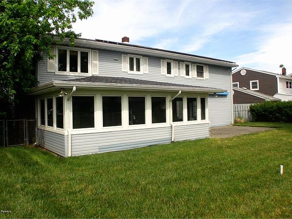 Large bi-level. just minutes to the beach, 4 full bedrooms. Master bedroom has full master bathroom. 3 bedrooms upper level, 1 bedroom lower level. Upper level includes large living room, dining room, eat-in kitchen, 2 full baths, Walk up attic for ample storage. Lower level features 1 large bedroom, half bathroom, large den with brick fireplace. Sliding doors lead into a large Enclosed porch in back. Thermal pane windows throughout. . Rear yard features an easement for direct, easy access to the municipal park. Double oversized garages provide for 2 cars and large storage space with power door openers for both. In front, 4 car paved driveway!