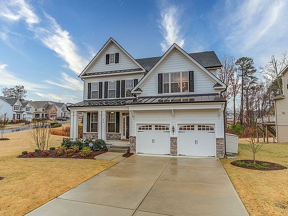 Immaculate, better than new construction in desirable West Cary. Open concept 1st flr, study, dining, guest suite. Gourmet kitchen with quartz/granite island, subway tile, Jenn-Air Pro SS appl, apron front sink, wine fridge, hardwoods, designer fixtures & lighting. Upstairs owners w/sitting, custom WIC, freestanding garden tub, dual head tile shower, plus 3 additional BR w/2 baths, large playroom/bonus. Enjoy large flat yard, rocking chair front porch & deck with gas line for grill. Resort style amenities