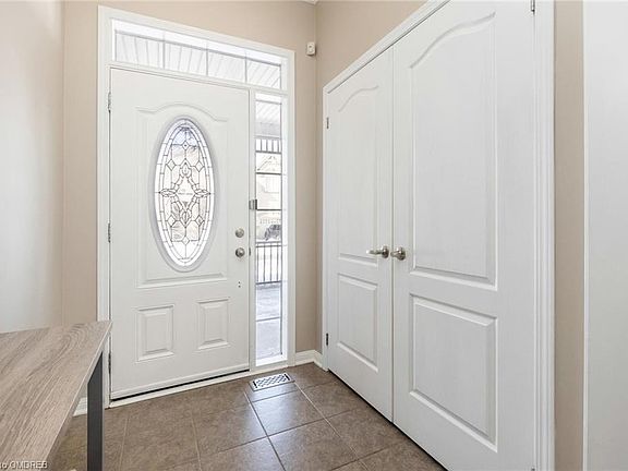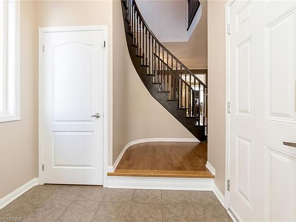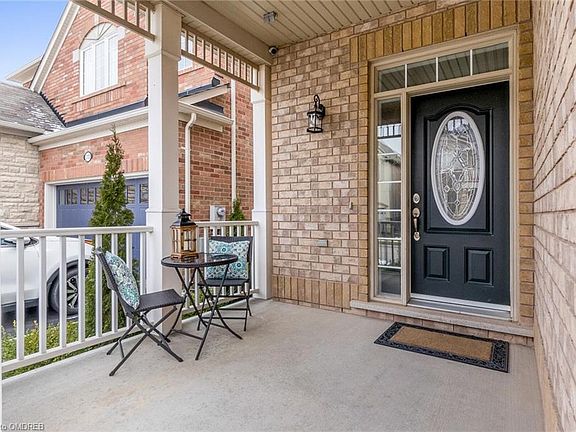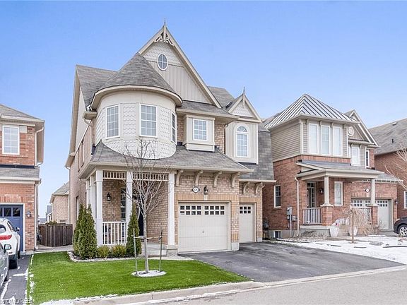 Set your sights on this immaculate 2 storey 2,536 sq.ft. detached home in highly sought after Scott neighbourhood in Milton, ON. Boasting 4 bedrooms, 3 bathrooms, 5 parking spaces, and zero maintenance landscaping, this home is perfect for the busy, growing family. With it's gorgeous Turret architecture and modern Tudor style charm this home stands out from the rest. Beginning with the stone portico, you get a sense of the character that flows throughout this home. Art niches in the hallway, 9 ft. ceilings, coffered ceiling in the den, crown moulding, hardwood floors, pot lights, and California shutters complete the main floor elegance. And with the gorgeous kitchen with large island, breakfast bar, pantry, stainless steel appliances and upgraded quartz counters the feeling of grandeur is completed. Moving upstairs, you approach 4 spacious bedrooms, laundry room and ensuite privilege Jack and Jill bathroom. The Master bedroom features a huge walk-in closet, 5 piece ensuite with separate shower and soaker tub, in addition to the sprawling space. With professionally landscaped exterior, no maintenance high quality synthetic grass, waterfall feature, and no sidewalk, you have the perfect move-in ready home.