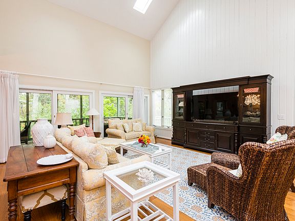 The 11th fairway of Cougar Point golf course provides a beautiful backdrop for this home. With beach access at the back doorstep, this home is convenient to the Property Owners??? Beach and Recreation Center and is perfect for enjoying the Island lifestyle.The superb view is the focal point of the living room. Three sets of sliding glass doors open onto the deck overlooking the course. The adjoining screened porch runs the length of the home and was made for enjoying all four seasons. A fireplace flanked by built-ins and hardwood flooring also highlight this space.Well-equipped, the kitchen offers plenty of preparation space. The breakfast room is lined in windows and opens onto the screened porch for alfresco dining. A separate dining room with porch access offers dining with a view.Featuring superb views of Cougar Point, deck access, and a walk-in closet, the master suite is comfortable and spacious. An additional guest suite with dual vanities is located on the second floor.The first-floor guest suite also offers deck access.Furnished.??
