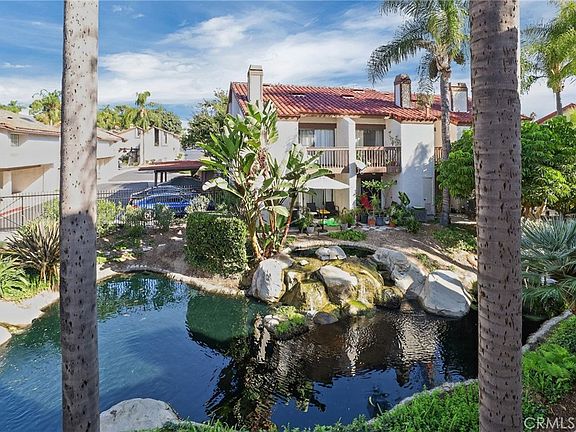 Welcome to this highly desired home in the charming Placentia Lakes Community. Once entering you enter the kitchen area with remodeled upgraded custom cabinets, granite counters, tlie flooring, bay window and recessed lighting. The kitchen offers ample storage and includes the refrigerator. Across from the kitchen is the half bath and closet that has been used as a pantry and closet for more storage space. In the dining room you will find more custom cabinets which can serve as a dining hutch and a bar as well. The dining room and living room have wood floors. The living room features a gas fireplace and a sliding door out to the patio. Once on the patio, you are greeted with the slow hum of the lazy river and the beauty of the lush landscaping. Outside also has a separate laundry room with washer, dryer and ample storage space. Outside also has a separate room for the hot watet tank. Upstairs you will find both the primary and secondary bedrooms. The primary bedroom features a tall ceiling, walk in closet, additional double closet and vanity area with sink. It also has a sliding door out to the patio which again takes you to the beautiful tropical scenery and sounds of the lake. The secondary bedroom offers a double closet and plenty of light. The bathroom has been upgraded with newer fixtures. This home has been freshly painted throughout. Tile/wood flooring downstairs and newer carpet upstairs. This unit also has central air for those hotter days. Come see what the beautiful community offers you, with it's 2 heated pools and spas, sauna and change room with showers, and tennis courts. Located by award winning schools, close to shopping and freeways. This is a must see.