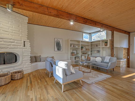 Quintessential Southwestern Sandia Heights Charmer is looking for its new owner! This one owner home has been cared for & loved by the same family for 46 years and now it's time for someone else to love it! Spectacular views from almost every room, this custom delight has so much to offer with lots of natural light, a spacious floor plan that includes: an open oversized kitchen w/ lots of cabinetry & a butler's pantry; an open living/dining area w/beautiful wood floors, a custom fireplace & built-in bookshelf... a wonderful space for entertaining; a large primary bedroom w/another custom fireplace & 3 other nice sized bedrooms which gives you plenty of space for everyone or an office. Special features include: T&G ceilings, adobe accent walls, extra storage & balconies for great views!