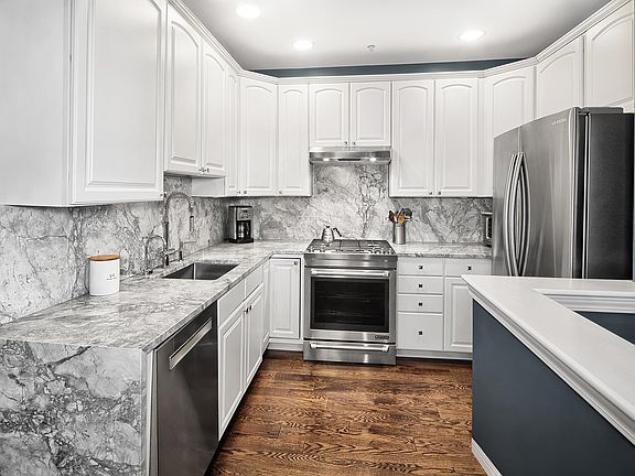 Pride of ownership abounds in this totally renovated Jacobs Ferry Albany style home!!! Two bedrooms plus a rec room which could be used as third bedroom. High ceilings in living room and architecturally styled windows provide worlds of light! Newer engineered hardwood floors throughout. Stylish kitchen with quartzite counters and full backsplash, stainless steel appliances including Bosch dishwasher and JennAir range. Filtered water Franke faucet. Custom steel railings, base millwork and walnut bench in dining area. Emtrek door hardware throughout. Custom closet and balcony in master bedroom. Remodeled bathroom with marble walk-in shower, Restoration Hardware vanity with custom marble top and all updated fixtures. New HVAC, compressor and Nest. Parking for two cars; one in garage and one in driveway. Sought after community boasts two pools with Jacuzzis, tot lot, waterfront walkway and free shuttle to NY Waterway and Light Rail. Steps to 158 bus to NYC. A Commuter's Dream!!