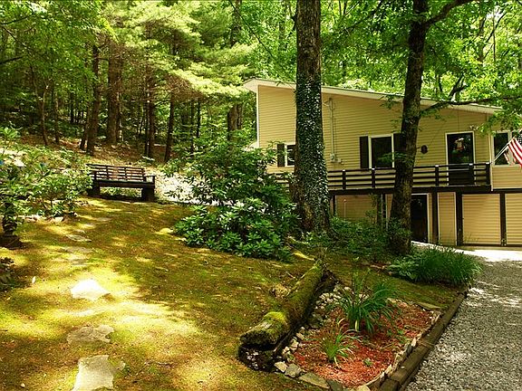 Simply Beautiful! Walk out of the door and onto a path that takes you right to the Appalachian Trail. Meticulously maintained, owners have preserved all that is gracious and quaint about this cabin and have rehabbed the rest with extraordinary care. Gorgeous sun-room with upgraded windows, near-new vinyl siding for low maintenance. Keep cozy warm on cold nights with a wood-burning stove. Basement garage has workshop, area for exercise and laundry. Need more parking? There is an RV/Boat canopy with electricity. And . . . that's not all! Lovely, natural landscaping giving special prominence to local flora. Sellers were "full-timers"--but the cabin would also be a fabulous vacation/rental home. Furnishings stay with the house. Don't miss out-this won't last long at this price! Seller offering one-year home warranty with sale.