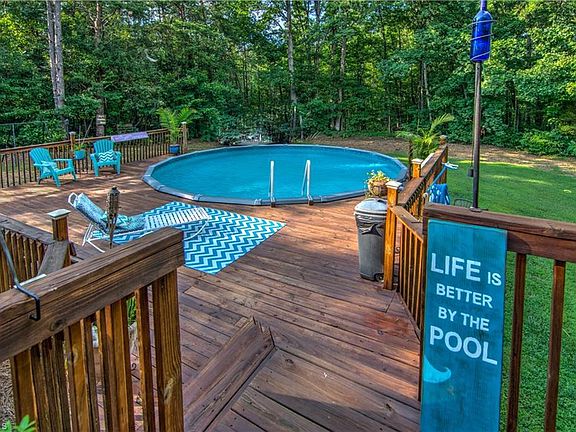 West Davidson area 3 bedroom, 2 1/2 bath home with above-ground pool with complete decking. Living, kitchen, dining with open floor plan. Kitchen w/ granite counter & bkft. bar. Large den open to living - great for entertaining. Lower level recreation rm. w/ bar & game room w/ pool table - both heated with electric fireplaces. Large unfin. area for exercise rm. & storage. Storage bldg. at driveway remains; 2nd stg. bldg. to be removed.