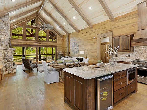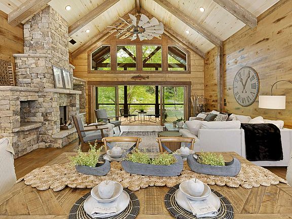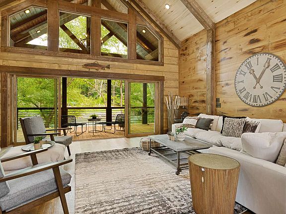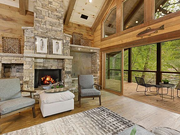Make your North Georgia dream come true on Miracle Lane! This beautiful custom home by Lomonaco Homes is constructed of Engleman Spruce Logs & is perfectly situated on 2 acres right on banks of rushing Fightingtown Creek! Home features 4,000+/- feet, an impressive great room with soaring ceilings, 3 stone fireplaces, custom barn doors & distressed hdwd floors. Beautiful woods incorporated throughout home: Aspen, Blue Ponderosa, hand hewn beams, Knotty Alder Doors, & more. Main level is open concept w/ great room/kitchen/dining all open making for the best entertaining, 16 foot sliders leading to over-sized party porch w/ outdoor fireplace, huge laundry room & pantry. Kitchen features custom cabinets & Viking appliances w/ huge party island! Spacious master suite on main. Terrace level w/ another great room & fireplace, + 3 guest beds & another room useful for home office or bunks.
