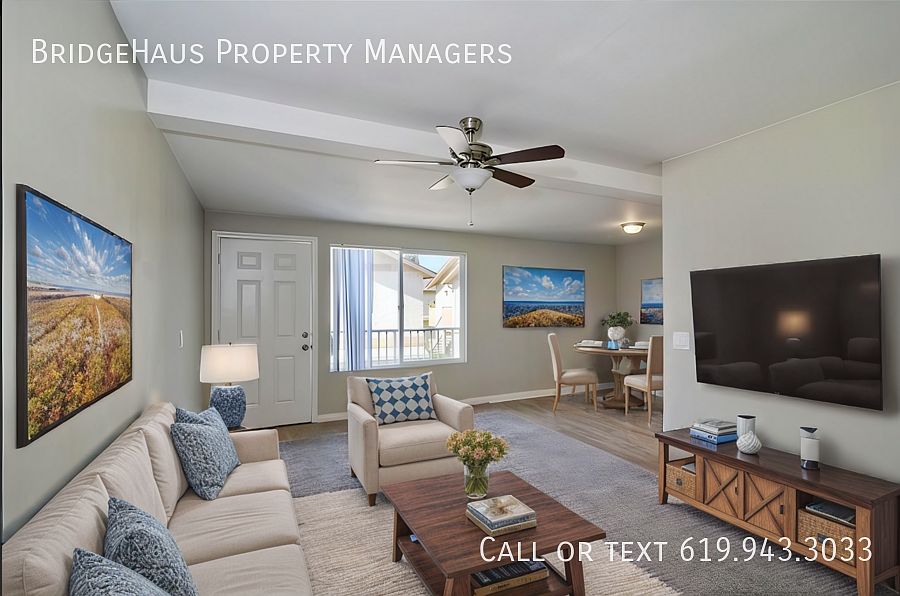 This Chula Vista Townhome won't last long! This property features 1,100 square feet of living space and a patio on the second floor with access from one of the bedrooms. Upon entering the unit, you walk into the well-lit living, dining and kitchen area. The kitchen has all of the essential appliances and plenty of cabinet space. Walk upstairs to the living quarters and you'll find three bedrooms, one of which has a patio for some outdoor lounging! Both of the bathrooms are also upstairs and recently renovated with a clean design and style. The townhouse has a detached two car garage under the unit for an additional charge, comes with a washing machine and dryer. The unit has no AC but does have central heat. BridgeHaus Property Managers, INC CA DRE #02143972 Brief Summary Of Rental Criteria - Household must make at least 2.5 times the rent in income. - Applicants must have a minimum credit score of 650. - Each person over the age of 18 must complete an application and pay a $42 screening fee. - You must be willing to sign a 12-month lease. - We score each household based on their income, credit score and rental history. - Apply within 24 hours of your tour and get $500 off your first month's rent. What You Might Have A Question About: - Monthly Rent: $2,695 - Security Deposit: $2,695 - 2-Car Garage: Additional $150/month - Pets: 2 Pet Max with a $50 Pet Rent per month per pet - Utilities You Are Required To Pay: Gas/Electric, Water - Available for Move In 8/15/25 Sewer Trash Water