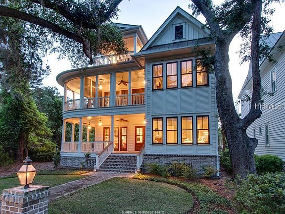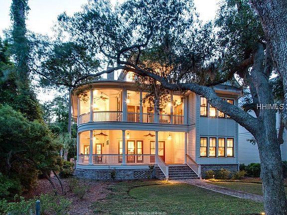 Amazing property, One-of-a-kind, three-story Classic Beauty! Rounded, wrap-around porticoes on two levels, third level finds covered porch to enjoy shade & water views . Walled-in back patio offers your own private heated pool with water fall. Hardwood floors throughout, stone & marble baths, gourmet kitchen with top of the line appliances, Sub-zero fridge, Wolf gas range, Carolina room, Media room with full bar, 3 fireplaces, spacious elevator, screened porch off MBR. Beautifully furnished, ready to enjoy as primary or second home. Location also ideal to add to short term rental program.