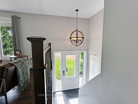 Country living, in town. On big treed acre, immaculate brick home offers wonderful family spaces both inside and out. The upgraded 3 +1 bedroom, 3 full bath home also has attached single garage plus detached double garage. You will be pleased with the tasteful palette found thru-out the home, creating sense of calm while enhancing all the natural light. Bright welcoming foyer has ceramic floor and double closet. Light-filled spacious living room opens to dining room, with patio doors to deck and BBQ gas hookup. Adjacent to dining and living room, modern contemporary kitchen sparkling with updates of ceramic floor, quartz countertops, pantry wall, island-breakfast bar and appliances. This home provides your family with ample storage such as the hallway's three closets. Primary suite overlooks private peaceful backyard and has double closet along with new 2025 luxury 3-pc ensuite with porcelain flooring. Two more good-size bedrooms, both have extra-large windows and closets. Main floor 4-pc bathroom marble vanity and ceramic floor. Lower level French doors open to generous family room with wall of windows and gas fireplace. You also have flex space for home office or gym. Lower level bedroom with closet; 3-pc bathroom has marble vanity and is combined with laundry centre that has storage. Family-sized mudroom provides more storage and door to attached garage. Upgrades include main floor windows 2022, lower level windows 2021 and front door 2022. Detached double garage insulated, heated and has hydro plus floor drains. Backyard a staycation oasis with large deck that includes hot tub and gazebo. The deck extends to above-ground 2021 pool, for endless summer fun. Large shed for storing garden gear and toys; the shed also has fenced area. In the evening, the family will enjoy gathering about the firepit for some s'mores. Hi-speed and cell service. Near all amenities, including schools and Mississippi River for boating and swimming. And, quick 20 min commute to Ottawa