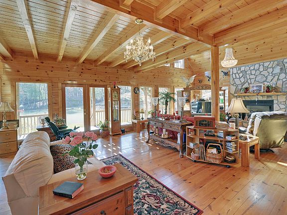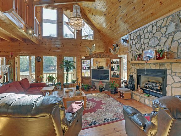 THIS STUNNING LOG HOME HAS A WALL OF WINDOWS TO LOOK OUT OVER THE POND. This is a wonderful level property with a large pond is stocked with beautiful koi fish. Entertain guests or grill by the outdoor fireplace in the gazebo. The cabin features a gas log fireplace in both the great room and the dining area, and lot of windows to fill the house with natural light. The home boasts hardwood floors and wood walls throughout, a master suite on the main level, a loft, plus a 2 car garage. There are porches and a balcony overlooking the pond where you will spend many an hour. No restrictions and no HOA fees. Additional acreage available. 05/14/17