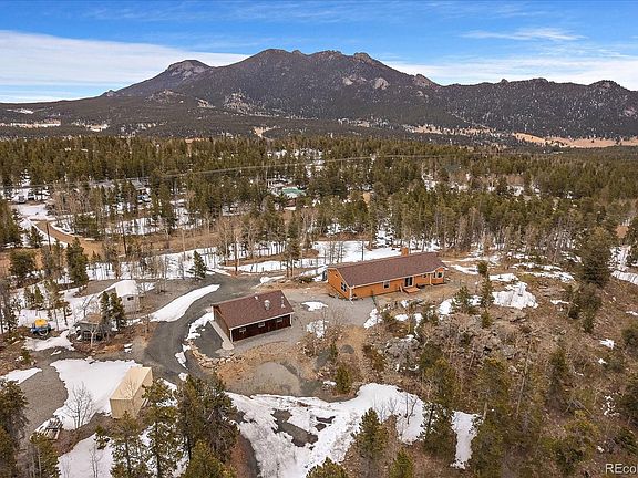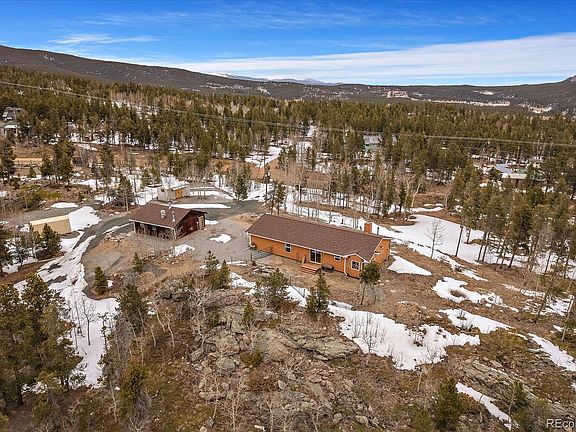 Sitting on 2.2 acres with unobstructed mountain views, aspen and pine trees, this 3 bed, 2 bath, 1,792 square foot mountain paradise has many updates both inside and out, leaving no stone left unturned. This single level, ranch style home creates endless possibilities with its fully functional, stairless floor plan. Once you enter, the open floor plan features large, light-capturing windows at every turn. High quality wood flooring and a rustic wood stove help create that cozy mountain home feel you’ve been looking for. The spacious kitchen features tons of natural light and an eat in island perfect for you and your guests to enjoy. The large primary suite features a large custom shower, and stunning custom concrete countertops. Let your imagination run wild with the oversized garage that has endless possibilities for your workshop or storage for all of your mountain toys. Head out to relax on the newly refinished deck and catch some fresh mountain air while enjoying the spectacular local wildlife! With easy access to Black Hawk and Central City, Denver within an hour, and national parks and skiing nearby, this desirable foothills location is bound to have you exploring Colorado’s beauty to its fullest. Schedule your showing today!