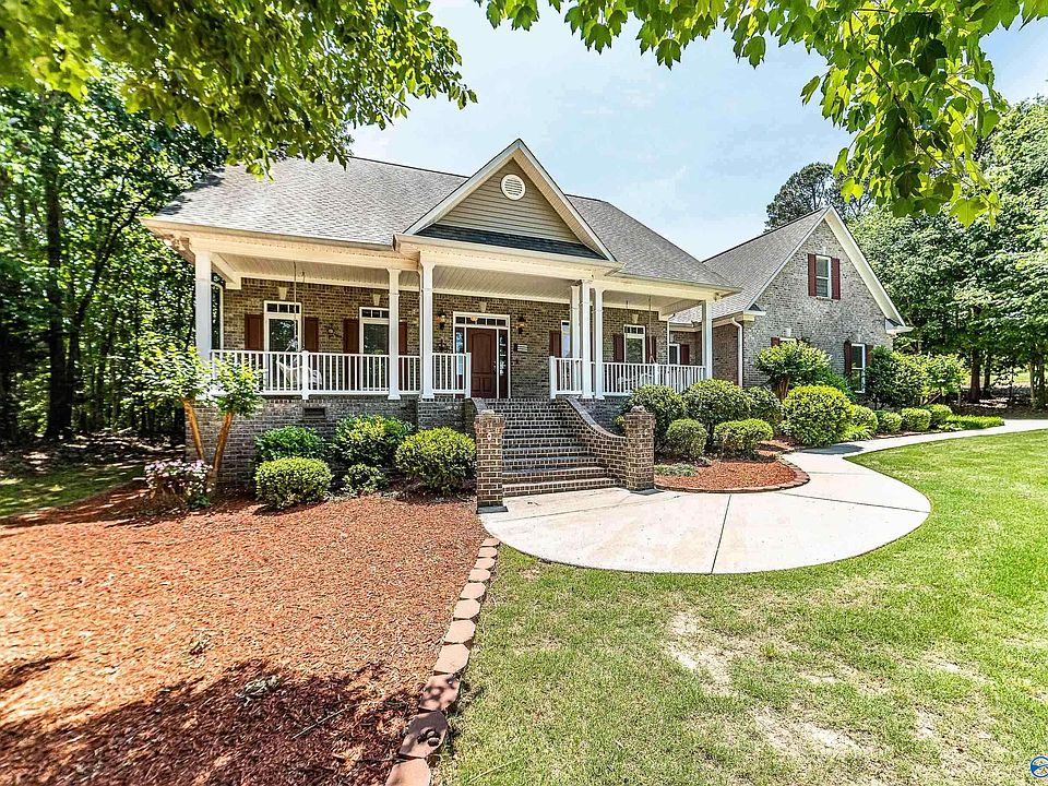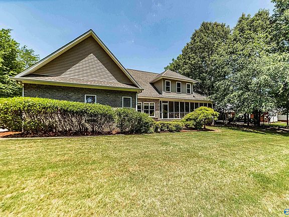 Custom Built Full Brick 5 Bd/3.5 Ba Executive Home in River Pointe Subdivision. Professionally landscaped, Treed Lot, Sprinkler System. Includes Custom Cabinets, Granite Counter tops, Hardwood Flooring, 3 Bedrooms downstairs, including the Master, 2 bedrooms upstairs, Media Room, and Bonus Room. 25x12 Walk-in Storage Space. Two Car Garage, Large Front Porch, and Screened in Back Porch. Freshly painted downstairs! Convenient to downtown Guntersville, Schools, the new City Harbor, and Lake Guntersville! Don't miss this opportunity!!