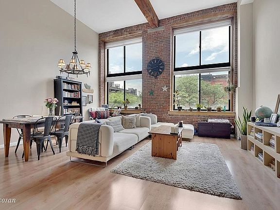Historic Carroll Gardens Jute Mill Condo Conversion Duplex Loft 990sf 1Bed 1.5 Bath One bedroom duplex 990sf open floor plan in converted jute mill in the heart of Carroll Gardens only one block from Carroll Street F train stop on Smith Street. Duplex loft conversion with 1.5 baths, 16' ceilings, 12x14 exposed original structural timbers, brand newly replaced 13' north facing windows with excellent light in exposed brickface with Hunter Douglas Duette Honeycomb up/down blinds. Recently built modern custom chef's kitchen with all Stainless Kitchenaid Architect Series appliances including: side by side fridge with filtered ice/water in the door, convection oven/range with pot-filler, Advantium Speedcook convection oven/microwave combination, dishwasher, deep D-shaped sink with Grohe fixtures & in-sinkerator pro garbage disposal, 58 bottle wine cooler, midnight black silestone quartz countertops, European maple cabinetry with full extension drawers, pantry & pull-outs with a tumbled slate floor. 1st Floor- wide wood plank pergo: living room with ceiling fan, dining room with iron chandelier, expansive coat closet, office space, mechanical closet & .5 bath 2nd Floor- New wood plank pergo large bedroom overlooking 1st floor with in-loft ceiling fan, 1 large double door closet & 1 single door cedar closet & full master bathroom with full size tub/shower combination. In Unit Mechanicals: Brand new 40 Gallon hot water heater, Dual stage Trane HVAC Central AC/Heat with integrated Humidifier and internet controllable thermostat. Custome wired for Directv HD, Verizon Fios & Time Warner Cable. Full size commercial washer dryer in common hallway right outside unit door. Common elements/amenities: Elevator building with 24 hour live-in super and underground on-site parking with short waiting list (for an additional fee). Large landscaped rear yard/common garden with grill and teak dining set. No fee bike storage in garage.