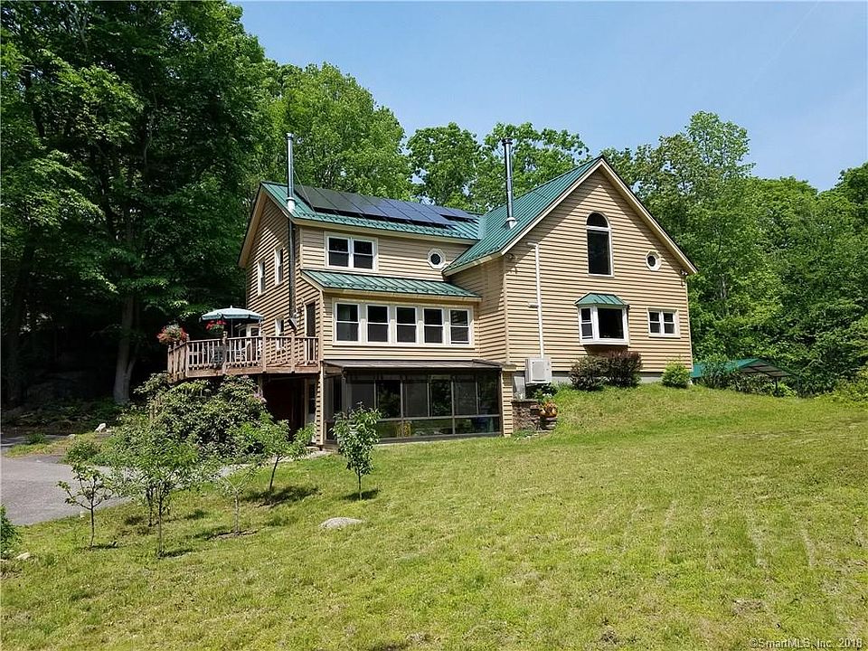 Lovely single family home with an attached in-law suite. The main house is post and beam style with a loft and open floor plan. Also a screened porch to enjoy your privacy. The in law suite is complete with its own entry and private deck to enjoy the 28.66 acre wooded lot with fruit trees. There is a guest bedroom that can be shared by the main house and in law suite. This home also has a sunroom on the lower level to enjoy gardening year round. The two separate basements is ideal for storage for both homes. The house is wired for a 4kw generator. A metal roof was installed in 2011. New vinyl siding and windows in 2017 make this home extremely energy efficient along with solar electrical system installed in 2014. See attached list for additional information.