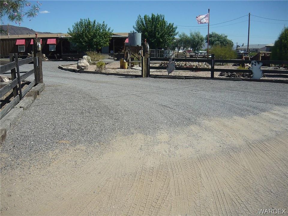 Shows pride of ownership. Unique home on 1.17 AC connected to a rural water company. Solid as a rock mobile with 2x4 constructed addition. *Drywalled *Insulated *Beautiful 2x6 pinewood floors *Custom oak cabinets *Two full kitchens, two bedroom & two bathrooms as well as a den/study with storage in home (Could be 3rd bedroom) *New wall AC unit *New windows *New roof 6 yrs ago *New hot water heater 5 yrs ago *60% of plumbing replaced *Tile & Granite counter tops *Breakfast bars *Nice front covered deck *window shade awnings *Trees & shrubs *Rock front yard old mining landscaping scene *Back yard drive thru gates enter into an old mining town scene *Behind town doors is a 3rd full kitchen *A bathroom with a shower *A bedroom with AC, next to that is another room with electric, both have covered wood decks *Covered wood deck with outside kitchen BBQ area with stove, sinks & tables *Perfect for entertaining *Two large storage sheds, as well as three smaller ones all masked by the town front *15x30 Workshop with wood burning stove for heat and a shaded patio *Home is less than 1600 feet from pavement *ALL personal property here is for sale outside escrow excluding, half ton Chevy & the Suburban *Owner may carry & is open to trade late model pusher motor home for part down payment