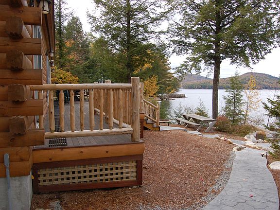 Open concept Merrimac Log Home, built in 2008 sitting on a point of land on pristine Merrymeeting Lake with sandy beach and "Raise A Dock" dock & mooring. Enjoy panoramic lake & westerly mountain views with a total of 163' of waterfront. Nicely landscaped with stamped concrete walkways, paved driveway, fieldstone fireplace; hardwood & tile flooring & large sleeping loft with 2 bdrms, 2 baths & utility/laundry room. Views can be enjoyed from every room in the house or on the 10 1/2' x 50' deck with awning. This Seller spared no expense and has installed beautiful upgraded lighting and overhead fans in each of the rooms. Included in the sale is an additional .71 acre lot with 20' of waterfront access. Also included with the property is a 16'x 10' bunk house and a 16' x 12' storage building. This is a must see!