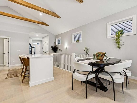 Welcome to this beautifully crafted bungalow that perfectly balances style, comfort, and functionality! Designed with an inviting OPEN-CONCEPT layout, the main floor showcases soaring VAULTED CEILINGS that create a bright and spacious atmosphere. The impressive kitchen features QUARTZ COUNTERTOPS, a statement FEATURE HOOD FAN, updated TILE BACKSPLASH, and plenty of cabinetry—ideal for both entertaining and everyday living. The adjoining living room centers around an ELECTRIC FIREPLACE with a striking FEATURE WALL, adding warmth and modern flair. A stylish MAIN FLOOR OFFICE with a BARN DOOR and custom attachment provides the perfect work-from-home setup. The upgraded LAUNDRY ROOM offers added convenience with COUNTERSPACE, SHELVING, and CABINETRY, complemented by UPGRADED TILE. The elegant HALF BATH is thoughtfully finished with a SLATTED ACCENT WALL, QUARTZ COUNTERS, and UPGRADED FIXTURES. The PRIMARY BEDROOM is a true retreat, featuring a generous WALK-IN CLOSET and a spa-inspired ENSUITE complete with DUAL SINKS and a fully TILED SHOWER. Downstairs, the FULLY FINISHED BASEMENT expands your living space with a cozy FAMILY ROOM featuring a FEATURE WALL and DRY BAR, plus TWO ADDITIONAL BEDROOMS and a MODERN 4-PIECE BATHROOM—perfect for guests or family. Step outside to your WEST-FACING BACKYARD OASIS, highlighted by a TWO-TIERED DECK with PRIVACY WALL, a PERGOLA WITH ROOF, BUILT-IN BENCH, and beautiful LANDSCAPING with florals and a PAVING STONE PATHWAY—all while enjoying scenic views of Cochrane. Located in one of Cochrane’s most desirable communities, this home offers high-end finishes, thoughtful design, and incredible outdoor living—truly a must-see!