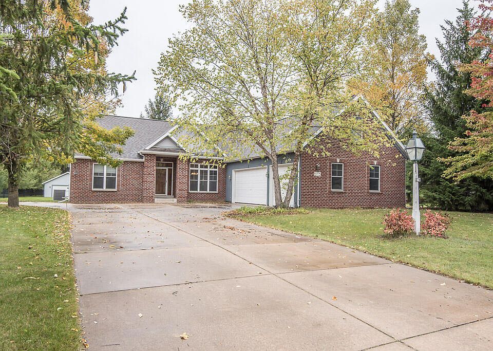 Roomy ranch on almost 1 acre yard in the Pines subdivision: a private lake community offering great fishing, kayaking, swimming and more. Split Bedroom design with open floor plan offers flex room over the garage, large kitchen w/plenty of cabinets & counter space, NFP in the great room, patio doors from Kitchen & MBR to the oversized deck. The Basement with high ceilings, access from the garage, egress windows, plumbed for full bath and framed out is just waiting for your rec room ideas. Saved the best for last; 3 car heated garage + 3 car detached garage = 6 car garage! Room for all your toys. Buy now and be in for the Holidays.