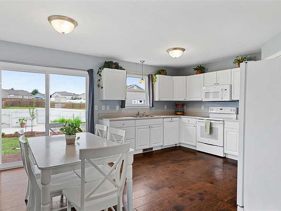 Don't miss this 3 bed, 2.5 bath charmer! An extra-deep FRONT PORCH welcomes family and friends. Enter to an OPEN-CONCEPT floor plan with rich engineered WOOD FLOORING throughout entire main level. A comfortable family room filled with natural light leads to the breakfast nook with sliding glass doors opening to the large, FENCED YARD, perfect for pets and backyard cookouts. In the kitchen, stylish white cabinets and a WALK-IN PANTRY provide ample storage, and the window over the sink makes it easy to check on action in the backyard. A MAIN FLOOR LAUNDRY and half bath complete the first floor. Upstairs, the master bedroom boasts a large walk-in closet and full bath. Two more bedrooms and a second full bath complete the second floor. An unfinished basement includes a rough in for a bathroom. The ingenious design of the raised garden beds with their irrigation system and weed-free paths make it nearly effortless to enjoy fresh fruits, vegetables, and flowers from your own backyard!