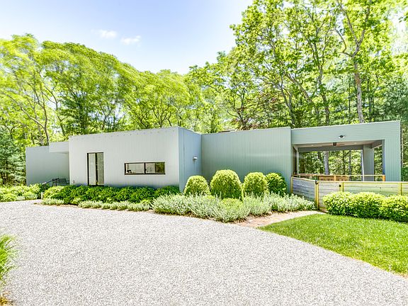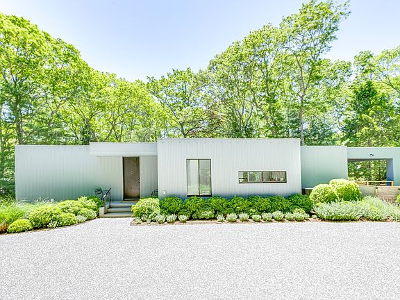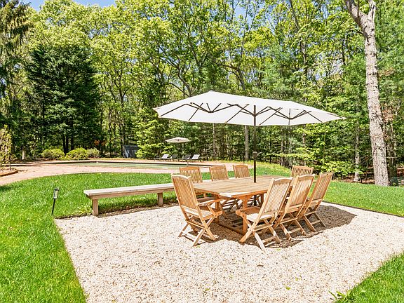 Rental Registration #: RR24-311 Just outside East Hampton Village, this stylish summer escape offers sun-drenched privacy with effortless indoor-outdoor living. A manicured turnaround drive leads to the modern home, set on beautifully landscaped grounds made for entertaining and relaxing. Out back, spend your days by the picture-perfect pool surrounded by brick hardscaping, or gather for al fresco meals under the covered porch and extended patio, complete with BBQ and two dining areas. Inside, natural light floods the kitchen via a central skylight, with a casual breakfast nook and adjacent dining area warmed by a dual-sided fireplace. The sunny living room opens to the patio, creating an easy flow for summer lounging. Each bedroom is airy and well-sized, including a serene ensuite primary with floor-to-ceiling sliders that open directly to the grounds. Stylish, comfortable, and close to everything - this is classic Hamptons living done right.