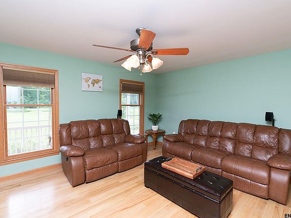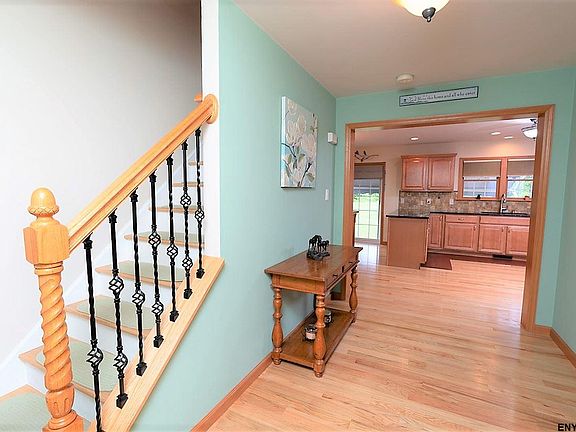 Bradford pear trees along driveway to this beautiful colonial home,on 7.5 picturesque acres.Welcoming wrap around porch&swing offers a scenic peaceful atmosphere.Almost 2900 ft.² of living space,with 4/5 bedrooms inc a heated space above garage.Renovated kitchen w/HW floors,granite counters,solid wood cabinetry w/custom pullout drawers&a double oven.French doors lead into the living room/office w/a stone surround gas FP.All beds,including over sized master,boast HW floors,paddle fan&spacious closets!
