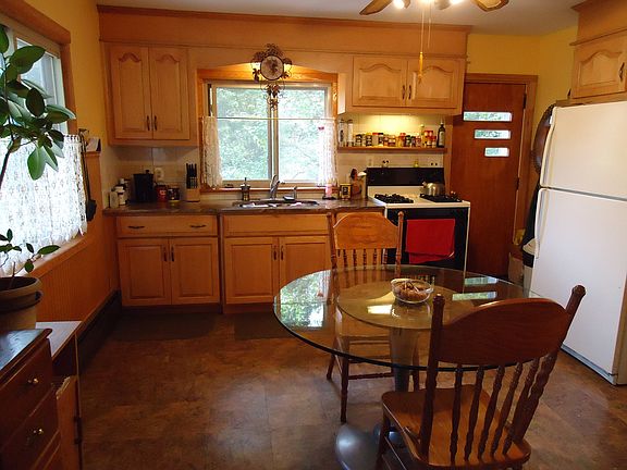 Charming ranch sitting high above the river. Quiet, private,scenic views. Sit on your wrap around deck watching nature go by. New roof, thermal windows. Kitchen and bath redone in 2005. Kitchen has beautiful granite counter tops and maple cabinets. Furnace and H/W heater replaced in 2005. Not in flood zone. The property runs down to the river.