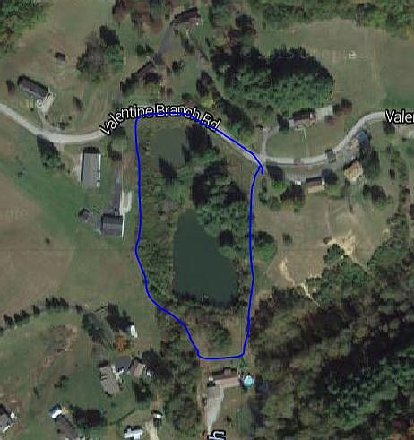 I am selling 5.14 acres, located on Valentine Branch Road off of Route 11. The property already has power on it, and has been perc tested for a septic tank. The property is just over 5 acres, total of 5.14 and includes not one but two fully stocked ponds. I am asking 40,000.00 or Best Offer. I would like to sell ASAP. No trades please. Approximate Property Boundaries marked in attached picture, plenty of room to build a home or set up a pay lake. Or drain the smaller pond to make a house seat overlooking the lower, larger pond. Nice Private area with good neighbors. I had planned to build my own house here but work has kept me from getting around to it. Great Blue Gill and Small Mouth fishing in both ponds, both ponds also have asian grass carp which keeps the underwater weeds down.