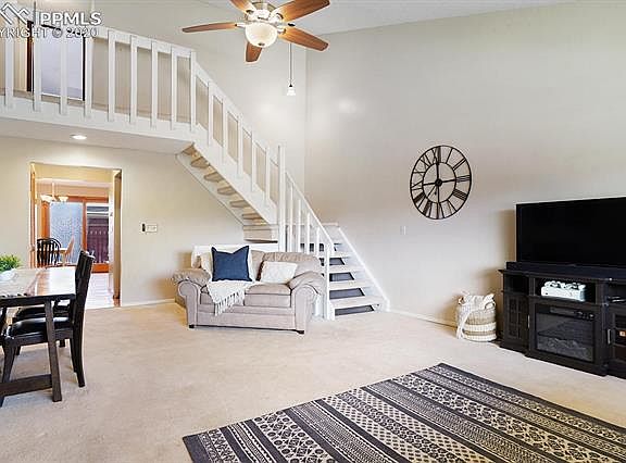 This spacious Townhome is located in award-winning District 20, close to shopping, restaurants, and Ute Valley Park. The expansive master suite features a 9x6 Loft area, generous closet space, and attached full bathroom. The finished basement offers a large family/rec room and second large bedroom with guest bath. The home is an end unit with vaulted ceilings, central A/C, a finished basement, and private stamped concrete back patio. Recent updates include new windows(2020), Electrical Panel(2020), AC and Furnace(2016). Awesome location! Plenty of nearby parks and hiking trails, and beautiful views of Pikes Peak. The Community features a private Clubhouse with Indoor Pool, Sauna, and Tennis Courts. The HOA also covers Water/Sewer, Trash & Snow Removal, and all exterior maintenance!