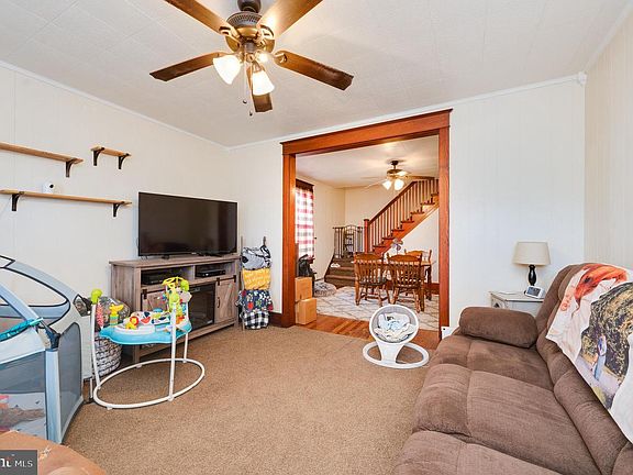 Welcome HOME - there aren't too many homes with the character of the original woodwork well blended with the beauty of a newer kitchen, complete with new countertops, glass tile back splash, stainless appliances and yes, the old pantry was kept to keep the style of the home intact; a beautiful built in piece of furniture. 5 year old carpet, windows and cool ceiling fans throughout. Full bath is on the second floor with the 3 bedrooms, but there is an extra toilet just inside the enclosed back porch for your convenience. New well pump - and onsite laundry hook up added in basement. Super clean and ready for quick occupancy. Great yard, deep lot with off street parking to rear.