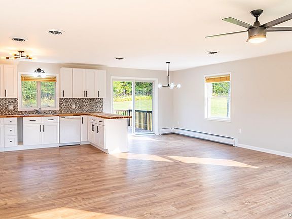 Completely renovated home on cleared 3.62 acre lot on quiet country road. Long paved driveway leading up to the home which features 4 bedrooms and 3 full bathrooms along with a two car heated attached garage. Inside features all new flooring through out, upstairs has new laminate flooring in the living room and dining areas along with the kitchen. New cabinets and butcher block counter tops in the kitchen which has an open layout and great natural sun light. Sliders off the dining area leading to large back deck with access to back yard area. Main level features 3 bedrooms along with 2 full bathrooms both of which have been renovated with tile flooring and new vanities. Main suite on main level with en suite full bathroom also featuring new floors and vanities. Lower level has large family room that can also be used as 4th bedroom, there are egress windows along with 3rd full bathroom, also featuring new flooring and shower, vanity, and toilet. Laundry connections in lower level along with access to 2 car heated garage. Home does features central ac for the summer months. Yard is level and cleared, and the home sits with in the Tri Valley school district.