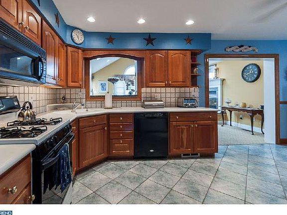 Expanded Lawrence Park Split that is Maintenance Free and Move in condition! Covered front porch with brick patio, ceiling fans and recessed lights. Living room with Hardwood floors. Large eat in kitchen with gas cooking, ceramic tile floor, corian counter top, chair rail and pantry. First floor family room addition with wall to wall carpet, gas fireplace, vaulted ceiling, sky lights, additional pantry/closet, sliders to deck and patio, powder room on this level and steps down to basement with BRAND new wall to wall carpet, additional pantry/storage closets, another gas fireplace, heater area and storage under steps. Three bedrooms are on the second level all spacious with nice sized closets and full ceramic tile bath with jacuzzi tub on this level. Upper level has Master Suite with full bath, double sinks and LARGE shower, wall of closets, walk in closet, vaulted ceiling and ceiling fan. Lower Level off kitchen that was original family room is now used as office. Laundry area, heater area (2 heaters), access into 1 car attach garage and outside exit to concrete patio and storage shed! Recessed lights are throughout the home. Many exterior lights. Six Panel doors throughout. Walk up attic. Security system. 200 AMP service NEW CA in Main House!