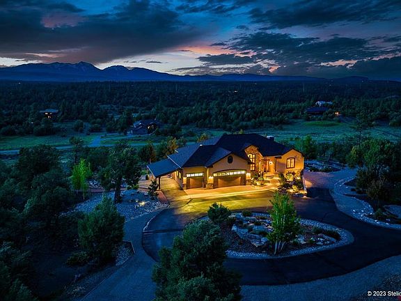 Welcome to 376 Wildcat Trail! This beautiful home and property on just over 13 acres, possesses panoramic views of the La Plata mountains and Lake Nighthorse. Located in the sought-after Trappers Crossing subdivision within 15 minutes to Durango, this meticulously kept property awaits! The home has been extensively remodeled and offers a wonderful open floor plan with the primary bedroom and bath on the main level with Barrique Series wood tile flooring, a large covered deck with majestic views of the La Plata mountains and vistas of Lake Nighthorse. Whether you are enjoying the sunrise with a morning cup of coffee or the sunset with an evening beverage, you will always feel as if you’re on vacation in your private, mountain retreat. The kitchen boasts of leathered granite, alder cabinetry and a very large island with pull-out drawers, extensive storage and a walk-in pantry. You will also find a breakfast area to start your day with the mountain views! The main level has Hunter Douglas remote-controlled power rolling shades, a gas fireplace in the living room and a large laundry area with cabinetry, sink and lots of folding space and storage. The primary bath on the main level has been recently remodeled and the huge master closet will have you wanting to expand your wardrobe! The roof on this beauty has recently been replaced, along with the evaporative cooler, the ice melt cable system and numerous windows throughout the main level. The lower level has hardwood flooring and you will enjoy a large family room complete with gas fireplace, wet bar, wine room, dual workstations, 3 bedrooms and 2 bathrooms. The 4th bedroom has a wall bed that can be closed when not in use and an abundance of built in enclosed storage which is attached to a multi-use studio space. Your guests may be so comfortable here they may never leave! There is a paved driveway which features a wonderfully soothing, lighted water feature, leading to the heated 3 car garage and attached carport. The carefully planned landscaping uses water wise drip irrigation, extensive fire mitigation work has been done on the property and the septic system was recently upgraded and replaced. The features of this home are too numerous to list here! Don’t buy anything in this price range without seeing this home first! LPEA-$129 Avg, $220 High, $93 Low