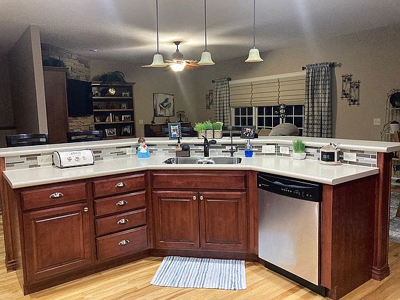 Craftsman style ranch with two cozy stone fireplaces . Two bedrooms up and two down. Laundry connected to master closet