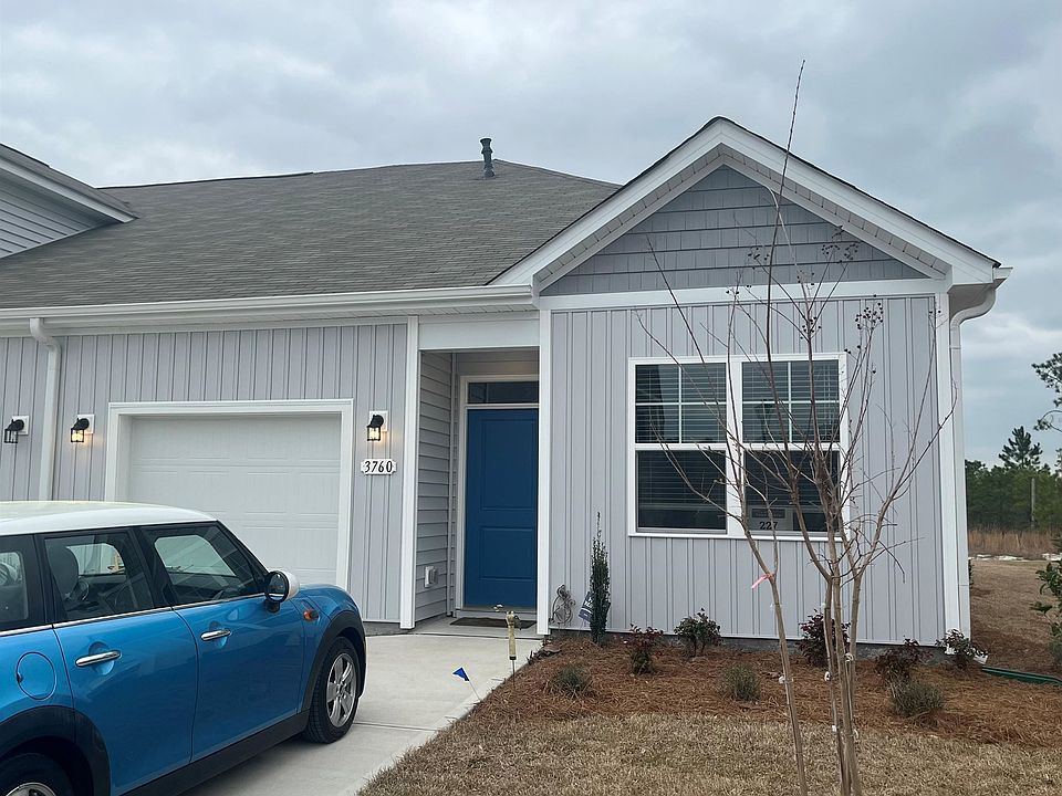 Low maintenance living at its best with these one and two story townhomes. This Carteret floorplan is an end unit and boasts an open concept kitchen, living, and dining area along with three spacious bedrooms! Features include white painted cabinetry, granite counters in the kitchen, stainless Whirlpool appliances, and laminate wood flooring that flows throughout the main living areas. The primary bedroom suite has a walk-in closet along with a private bathroom with dual vanity and large shower. Enjoy the beautiful coastal weather on the rear covered porch! One-car garage with garage door opener. It gets better- this is America's Smart Home! Ask an agent today about our industry leading smart home technology package that is included in each of our homes. *Photos are of a similar Carteret home. This home is under construction. (Home and community information, including pricing, included features, terms, availability and amenities, are subject to change prior to sale at any time without notice or obligation. Square footages are approximate. Pictures, photographs, colors, features, and sizes are for illustration purposes only and will vary from the homes as built. Equal housing opportunity builder.)