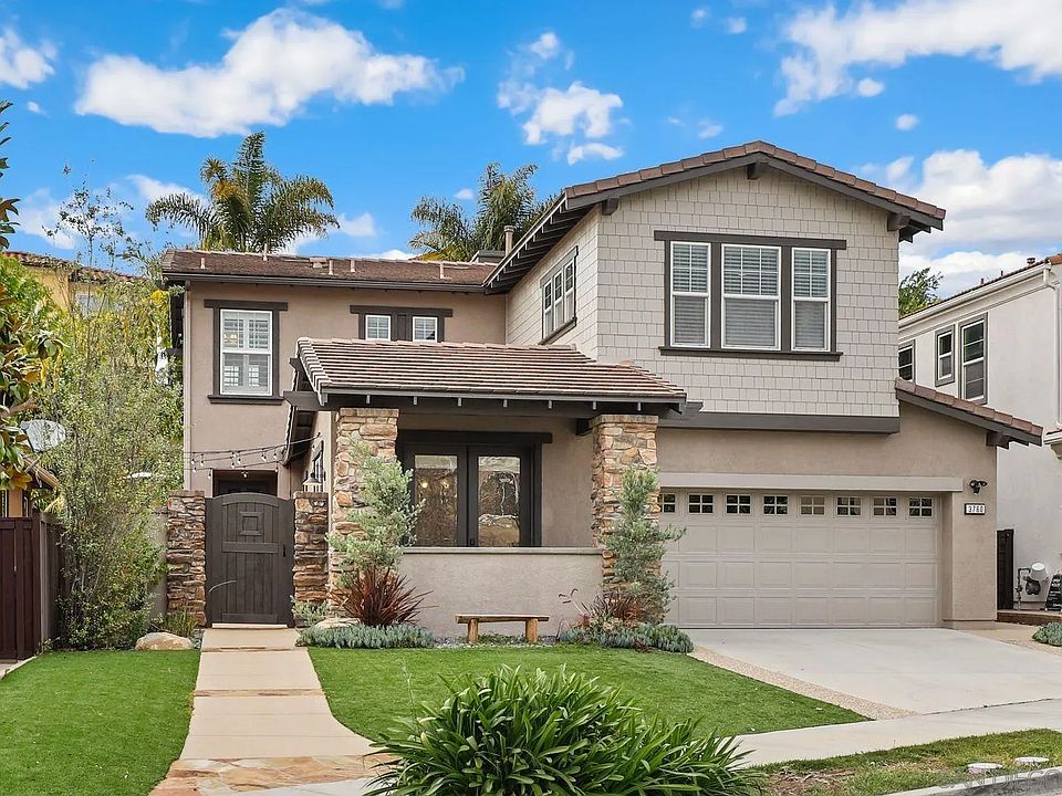 Welcome to your dream home in Carlsbad's highly coveted Foothills community! Located on a quiet cul-de-sac, this stunning home has been meticulously maintained and high quality design details are reflected throughout including NEW: Interior and exterior paint, Shaw engineered hardwood flooring, carpet in the upstairs bedrooms, Satori porcelain tile in the bathrooms and laundry room. The gourmet kitchen boasts NEW custom frameless Deep Blue Sea solid wood cabinetry, 8 slabs of Caesarstone white quartz countertops with a waterfall island, pendant lighting, high end stainless steel appliances including a Chef’s stove, Bosch refrigerator, microwave drawer and beverage refrigerator. Seamless indoor/outdoor living with a remodeled front courtyard, custom landscaping, artificial turf and fire pit to relax, entertain or dine al fresco. Convenience meets luxury with a main level bedroom & full bath (with seperate shower & tub), an upstairs loft (perfect for an office, gym or extra living space). Upstairs you'll find 3 bedrooms including a grand primary bedroom with a walk-in closet, high end built-in closet organizers & an en-suite bathroom complete with a walk-in shower, soaking tub, dual vanities. Additional features include recessed lighting, plantation shutters, & garage storage. Experience Country Club living: residents of the Foothills enjoy amenities including: a Jr. Olympic size pool, kids splash pool, fireplace area, pickleball court, multiple parks and community trails. Just 2.5 miles to the beach and I-5. Close proximity to the highly acclaimed Carlsbad School District.