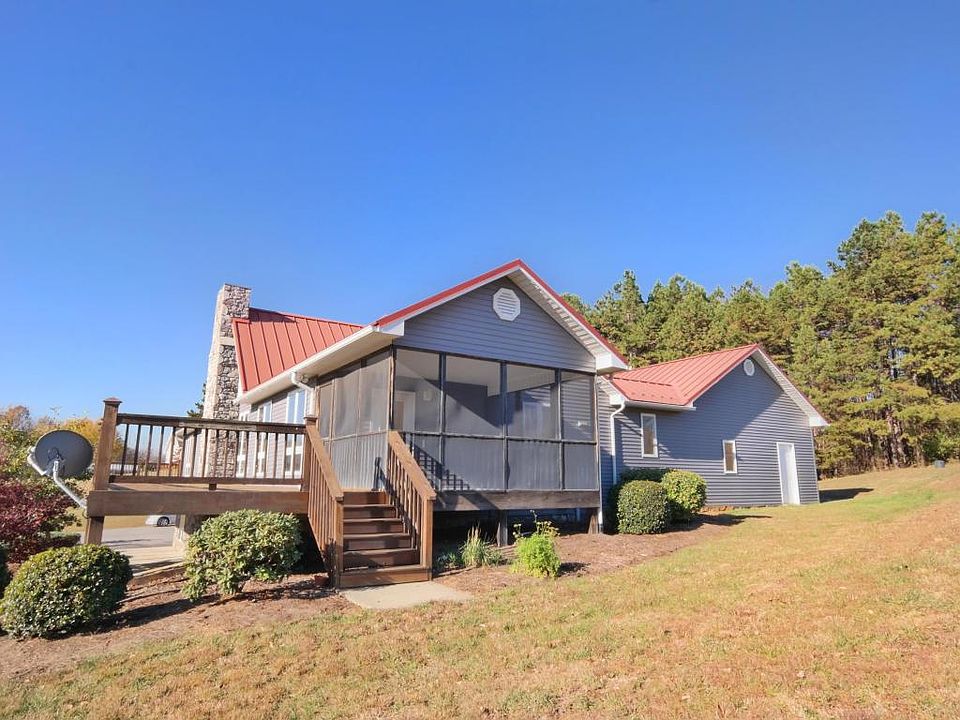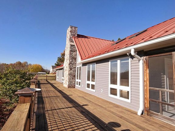 Contemporary ranch on 2.6+ acres. Wonderful open floor plan with lots of glossy light! Vaulted ceilings, skylights, hardwood flooring, two stone fireplaces, screened porch. The deck runs the length of house. Attached two car garage and drive under two car garage. Wiring in place for generator. All in a beautiful setting with views!