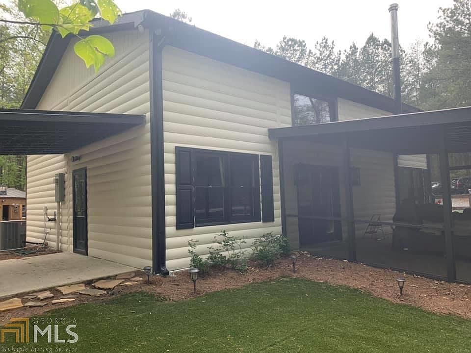 1 Bedroom 1 and 1/2 Bath with additional room that could be an office, den or another bedroom. Custom Log Cabin to look like a rustic barn with two additional outbuildings/workshops with exterior that looks like an old general store and one that looks like a hardware store on 2.94 acres. Main cabin has 14 ft ceilings in the family room/kitchen combo and 9ft ceilings in the bedroom, den and bathrooms. Large Laundry room. 500+ ft driveway with gated entrance and fence for extra privacy and circular drive at the house site for easy access. Fenced area around the house with artificial turf in the front yard for low lawn maintenance. Nice level/rolling wooded lot, seasonal mountain view, county maintained paved road. Ride your side x side to 3 local vineyards nearby or the Apple houses! Great place for a garden or horses! Convenient to Hwy 515 or Hwy 52 towards Dawsonville. Private, quiet, very nice area. This property is truly unique and in a great location.