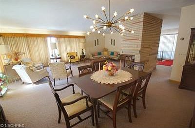 Fabulous opportunity for the lover of mid century modern! This large custom built, one owner ranch, was designed by architect George Sideropoulos. Before its time with expansive rooms, walls of windows, and open floor plan surrounding an exposed brick fireplace. The entrance has 18 feet of brick planters, enormous windows, an exposed staircase to the lower level, and display shelves to allow light to pass to the foyer. The living and dining room combo are centered around a 2 sided brick fireplace, and flanked by windows intended to integrate nature. The kitchen is pristine maple cabinets with display cases, and ample storage. The kitchen is conveniently located next to the door to the covered patio, and the 2nd staircase to the lower level. The 3 bedrooms have hardwood floors & triple closets! The lower level has an enormous partially finished family room with a second 3 sided fireplace. The utility area has glazed tile walls, a full bath, and access to the garage.