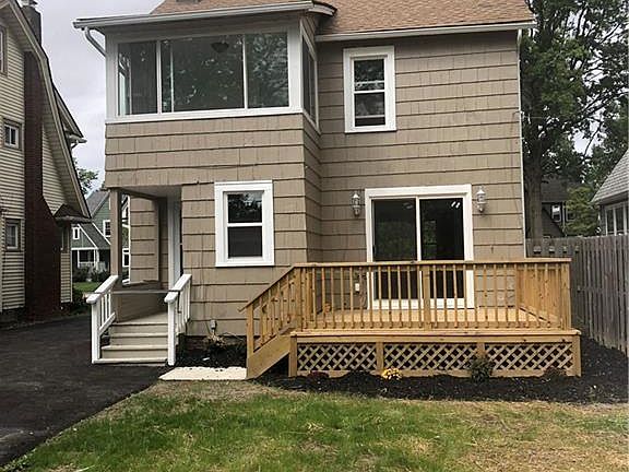 THE ONLY THNG THIS HOME NEEDS IS A NEW OWNER! This renovated colonial has 3 bedrooms and 1 bath. The living room features a stone fireplace with an attached sunroom with a beautiful view. The dining room has built in display shelves and patio doors that opens up to a newly built deck that is perfect for entertaining. The kitchen has been completely renovated with included stainless steel appliances. The basement is freshly painted and partially finished complete with washer and dryer. The bedrooms are spacious and each one contains beautiful ceiling fans and ample closet space. The bathroom is completely updated and the second floor enclosed sunroom overlooks the beautiful backyard. The attic is finished and fully carpeted and can be used as a bonus room or an additional bedroom. Additional updates include: new roof, windows, new central air unit and driveway, updated electrical and plumbing and a brand new 2 car garage. Sleep sound with a home warranty and a violation free home. Schedule your showing today and end your home search.