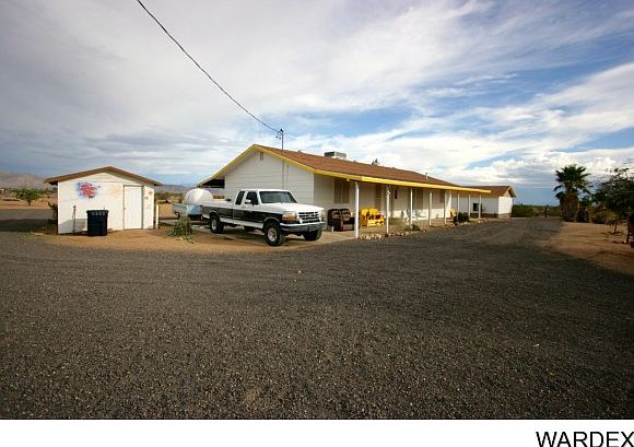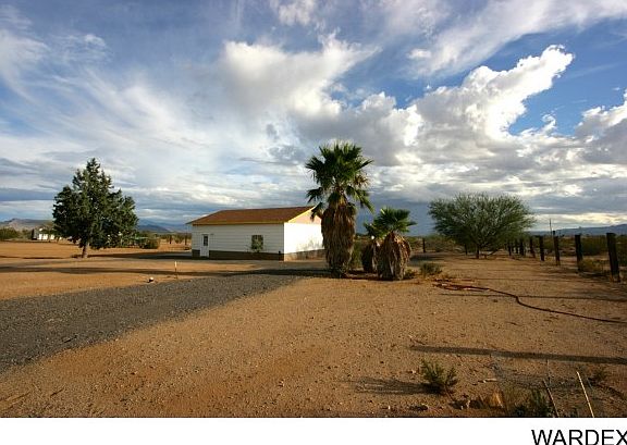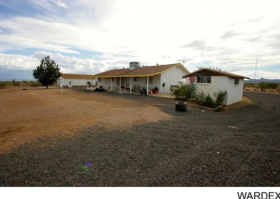 This house sits 4 tenth of a mile off paved road. Water Haul on non-maintained dirt road. Beautiful 3 bedroom, 2 bath, 1.7 acres surrounded by open land with views of Cerbat and Hualapai Mountains from the back (East), and great views of the Black Mountains to the front (West).. 1508 sq.ft plus a Finished 865 sq. ft. Basement (accessed from upstairs). The Basement could either be an extra (4th) bedroom, or office with enough space for play room/activity room ... Well maintained Ranch Style house. Property is crossed fenced. Water haul with 2500 in ground Water Tank. .. A great Chicken Coup for fresh egg breakfast .. Separate three car garage with more than enough space to do your handy man work (220V and 120 volt hookups). Covered 66 foot Front and Rear porches to enjoy beautiful sunsets and sunrises ..