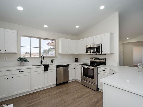 - Description: Breakfast Bar/Counter,Lighting Recessed,Linoleum/Vinyl Flooring,Quartz Countertops,Stainless Steel Appliances,Walk-in Pantry