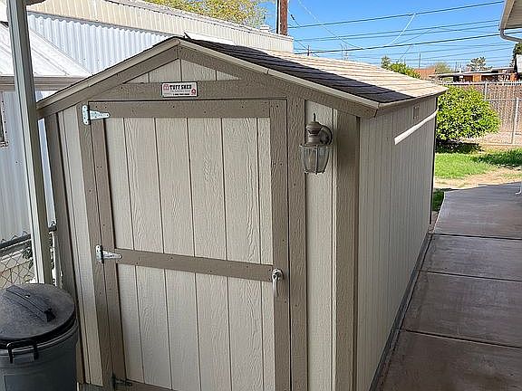 Carport,awnings,shed quiet park, no dogs allowed great neighbors 4 room is a office trash paid by park.owner pays for water electricity and gas fenced yard lime tree upgraded inside new drywall windows flooring new kitchen cabinets and granite countertops will consider sell furniture with home for price