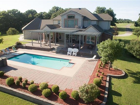 Beautiful gated 28 acre estate. This custom 5 Bedroom home features an open concept perfect for entertaining with sweeping views. Vaulted ceilings with amazing beams; open curved staircase and cat walk overlooking living and entry; stacked stone fireplace; gorgeous spacious kitchen; multilevel patio leading to pool; stunning master suite with fireplace, safe room. Greet the day overlooking the swimming pool and magnificent grounds. Lake size ponds.