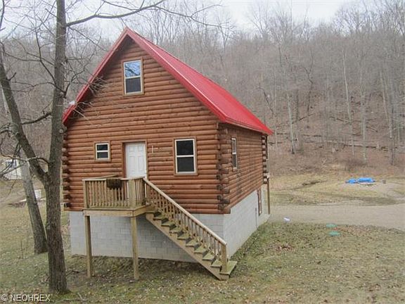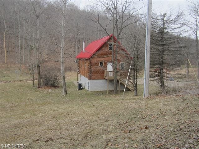 Enjoy your summers in this beautiful 3 bedroom, 1 1/2 bath log cabin approx. 5 minutes from Tappan Lake! Year around living or a great weekend get-away. Cathedral ceiling living room includes a triple wall flue wood burning stone fireplace and quality hard wood floors. Sliding glass doors open to a huge covered back deck that overlooks the brook, and a wooded backdrop. Nice sized fire pit area is perfect for those summer BBQ's! Loft area can be master bedroom, or easily fits 2 beds. The lower level includes 2 bedrooms , a full bath, and a kitchenette/living area. Appliances stay. All furnishings can stay. This property sits on privately owned land! Total square footage does not reflect 660 Sq. Ft in lower level. Seller is offering a 1 yr. America's Preferred Home Warranty. Seller does not own mineral rights. Also includes parcel #29-0000446.000