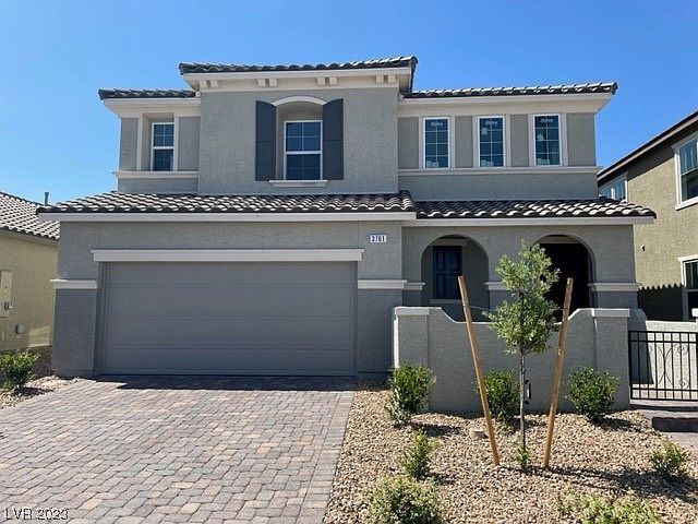 Brand new move in ready two story home in master planned community Inspirada. This home has a gourmet kitchen, waterfall island, extended shower with seat in primary bathroom, covered patio, tankless water heater and much more!