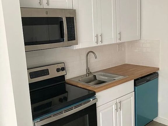 Includes stainless steel appliances such as a refrigerator, oven, microwave, and dishwasher.