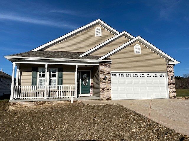 New build in Harbor Ridge Golf Community along hole #5 - Chambers floor plan with sunroom addition with French doors and front dining area overlooking front porch. Gorgeous hickory cabinets by Chardon Kitchens, outstanding flooring by Lakefront flooring. 5 year LERTA plan, Anderson Windows, quartz countertops, block foundation, brick veneer on exposed block, rough plumbed basement for shower bath, hi-efficiency furnace w/ central air, basement egress window, el oh door opener with touchpad.