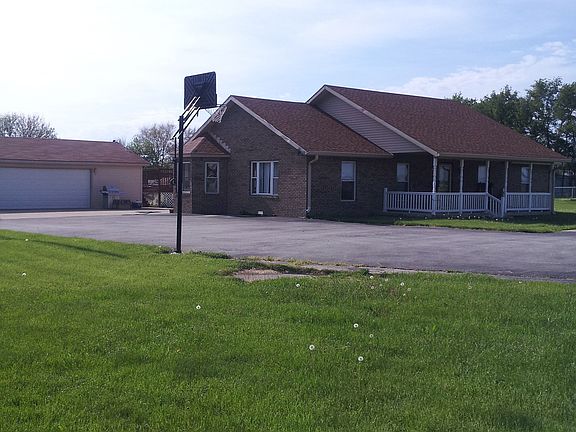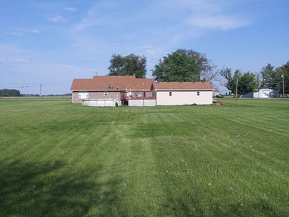 Wide open spaces! Outside and inside, this brick ranch home with 1,895 square feet offers space to stretch out and cozy comforts to relax. Situated away from the road and on 2 acres in Northwestern Schools, your home is just beyond a large shade tree. The covered front porch is perfect for a couple of rocking chairs with views of amazing Indiana sunsets with cornstalk silhouettes. As you enter your home, you will appreciate the light and airy feeling with the vaulted ceiling, natural light and hardwood floors. Your living room is large enough to offer multi-purpose if you desire a music area, a place for toys or a spot to set up for school at home. Off of your living room is your kitchen and dining area. Tiled kitchen floor and recessed lighting keep this kitchen clean and bright while the dark cabinets offer a rich contrast elevating the space. Kitchen offers breakfast nook area with views and access to the backyard. The dining room offers understated elegance with bay windows and chandelier. Home features three bedrooms and two full bathrooms. All of the bedrooms have ceiling fans, ample closet storage and plush carpet. As you walk into your owner's suite, your eyes are drawn upwards to the detail in the tray ceiling. The soft blue ensuite bath has pendant lighting, brushed nickel fixtures, dual vanity and another closet with plenty of room for clothes and linens. A true Hoosier home feeling, your property is lined with partial privacy fence, planted fields and mature trees. Detached two-car garage and storage shed for vehicles, outdoor toys, tools and just the place for pool supplies. Because, your property also has an above-ground pool with deck! Hoosier summers (and autumns) can really bring the heat, and here you can move-in to have your own personal paradise in the country!