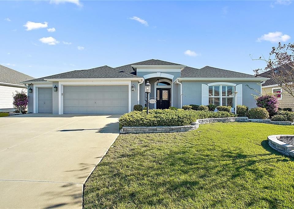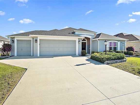 3/2 CBS Designer ELM in Dunedin with 2 Car + Golf Car Garage, Enclosed Lanai, OPEN FLOOR PLAN, VAULTED CEILING, Spacious Kitchen with Breakfast Bar, Corian, INSIDE LAUNDRY, Dining Area, Large Living Room with Laminate and stacking sliders to Enclosed Lanai, Large Master Bedroom with Tray Ceiling, Laminate, Plantation Shutters, En Suite, large Walk In Closet, Roman Shower, Dual Sinks, SPLIT BEDROOMS, Bedroom 2 with Double Closet, Bedroom 3 with Double Closet, Guest bath with Walk In Shower, Large Vanity, Cul De Sac Street. Close to Brownwood Paddock Square and Lake Sumter Landing, Belle Glade Country Club and Championship Golf Course, Colony Cottage and Rohan Regional Recreation Centers, Neighborhood Pool and Recreation Center, Soaring Eagle Softball Complex, Shopping and Restaurants. PLEASE WATCH OUR VIDEO OF THIS LOVELY DESIGNER HOME!