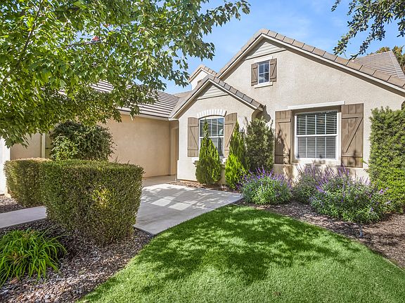 Welcome to 3761 Serena Avenue, located in the highly desired Harlan Ranch Community which offers a community pool, parks, club house, trails and much more! Step past the mature trees and the privacy hedge to the front door where one will be greeted by a tempered glass storm door which allows for a view of the front yard while letting light into the home. At the entry one will notice the large picture windows in the living room that draw your eyes to the inviting backyard which is equipped with a covered patio, fire pit, mature landscaping and seating area. The living room is a generous size, offering plenty of seating for family and guests, while the open concept is perfect for entertaining . The kitchen and dining area are outfitted with granite counters and stainless steel appliances as well as an island overlooking the family room. Behind the kitchen sits a second suite with its own walk-in closet, full bath and a slider that opens to a private patio off the backyard. This room can be used as an additional bedroom, den, office, etc. On the opposite side of the home sits two bedrooms at the front and a full bathroom. The owner's suite is tucked at the back of the home and nestled in the mature trees with all of the shrubbery the yard has to offer making it the perfect place to relax at the end of the day.